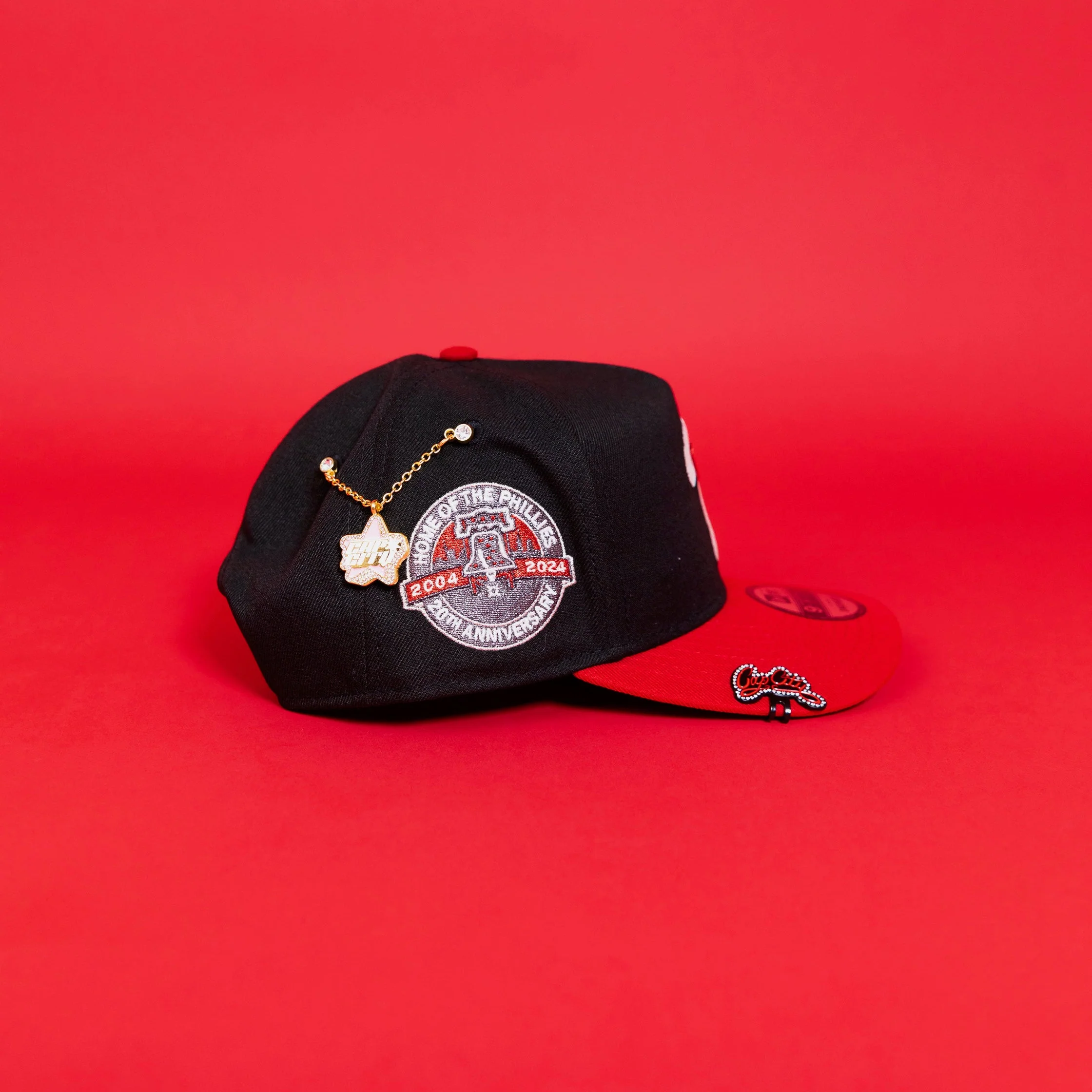 NEW ERA EXCLUSIVE 9FIFTY A-FRAME BLACK/ RED PHILADELPHIA PHILLIES SNAPBACK W/ 20TH ANNIVERSARY SIDE PATCH